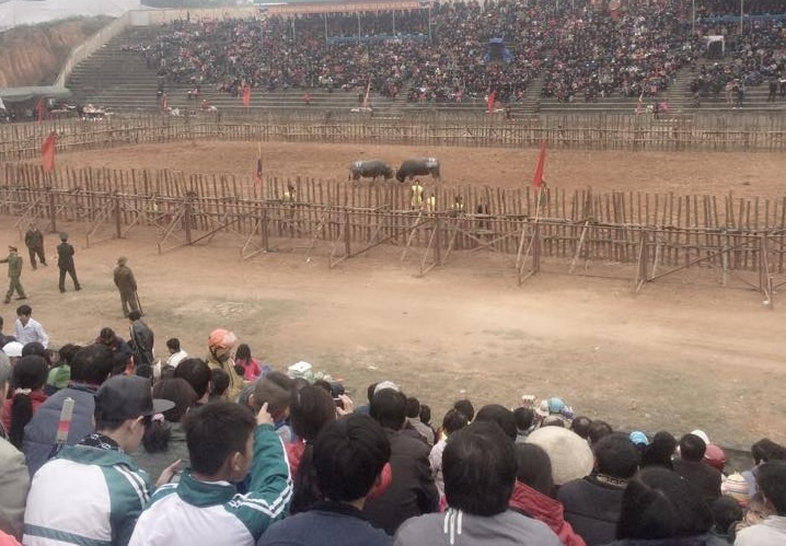 | Đấu trường chọi trâu dựng xa khán đài để đảm bảo an toàn cho người xem. |